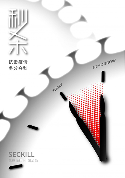 設計簡介:畫面根據(jù)一線防控人員請愿書進行情景處理,繁多的紛飛請愿書意指援助人員的動力和熱情,也同樣展現(xiàn)了全國人民對于本次防疫的高度配合和大力支持。