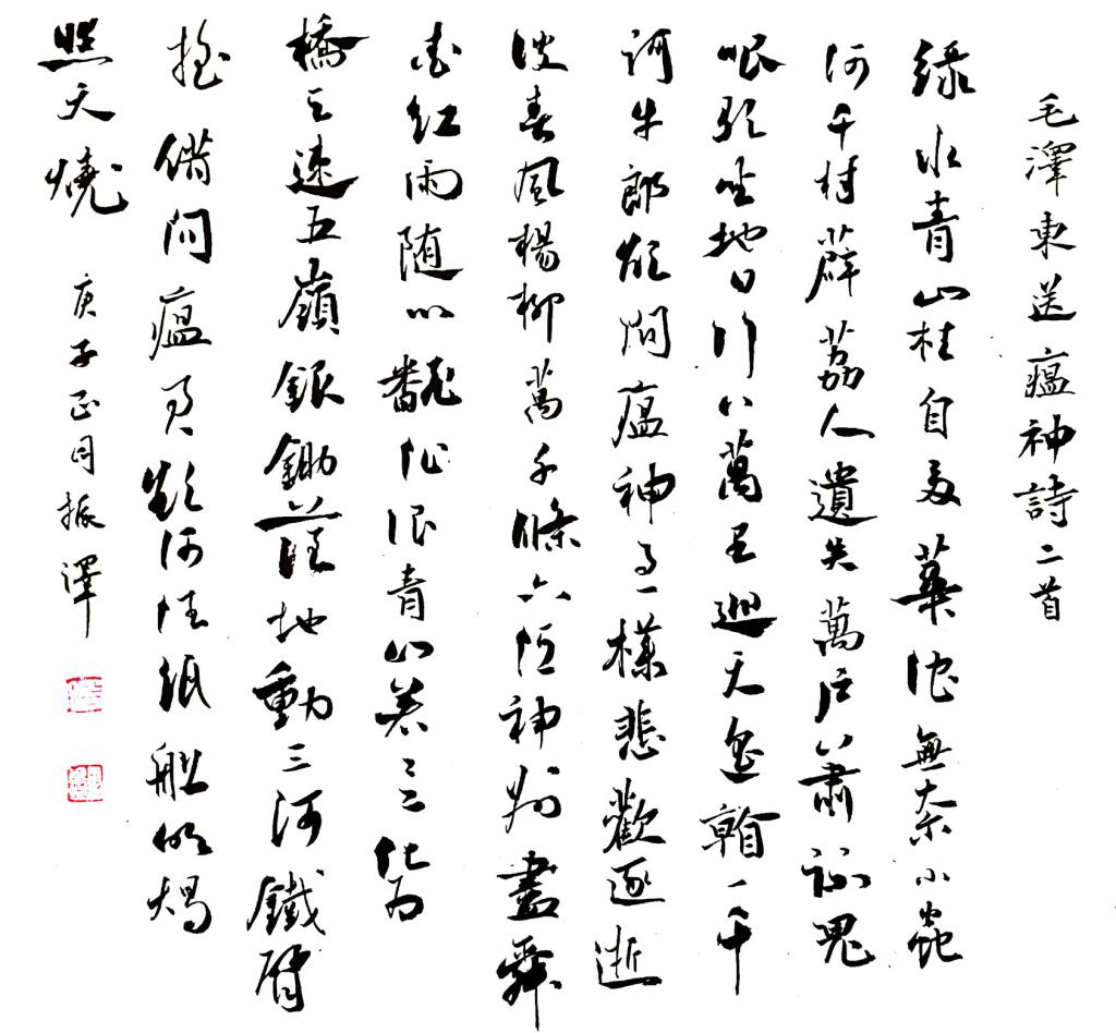 《毛澤東詩詞送瘟神二首》書法 滿振澤