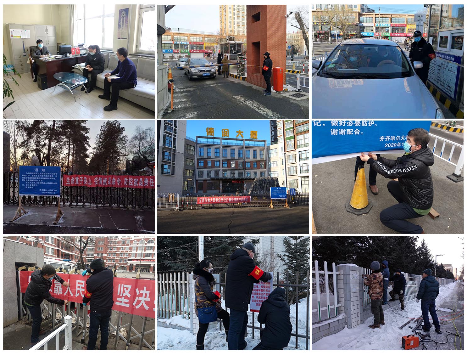 在領(lǐng)導(dǎo)班子的帶領(lǐng)下,黨員干部沖在第一線,有條不紊地落實了各項防控措施。1月22日,校區(qū)封閉管理率先在全市開展,學(xué)校門禁系統(tǒng)對外關(guān)閉,禁止外來人員和車輛入校。大年初一,部(處)班子成員實地查看學(xué)校周邊圍墻及對外部開放的樓宇情況,形成封校預(yù)案。1月27日,封校工作開始實施,我校校園面積大、出口多、校園封閉任務(wù)較為艱巨,但保衛(wèi)工作人員克服重重困難,與后勤部門一起,僅用3天時間就完成封閉校園任務(wù)。隨著疫情形勢的嚴(yán)峻,對入校人員的管理任務(wù)加大,每天入校人員達(dá)到400余人次,但工作人員不辭辛苦的認(rèn)真地量體溫、檢查、登記,保證了校園安全。