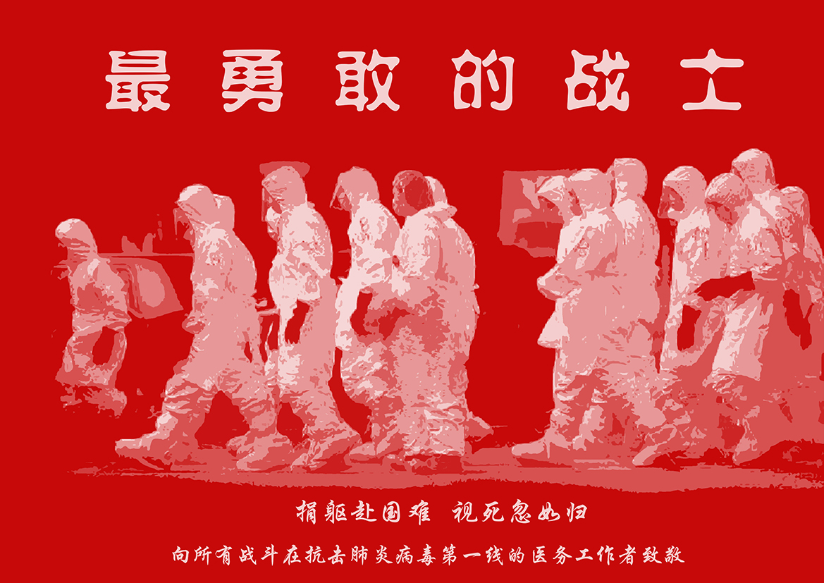 設(shè)計說明:畫面表現(xiàn)了一群正要上前線的醫(yī)務(wù)人員形象,國難當(dāng)前他們能戰(zhàn)勝病魔還大家一片安寧,是最勇敢的戰(zhàn)士。捐軀赴國難,體現(xiàn)了醫(yī)務(wù)工作者視死如歸的精神!