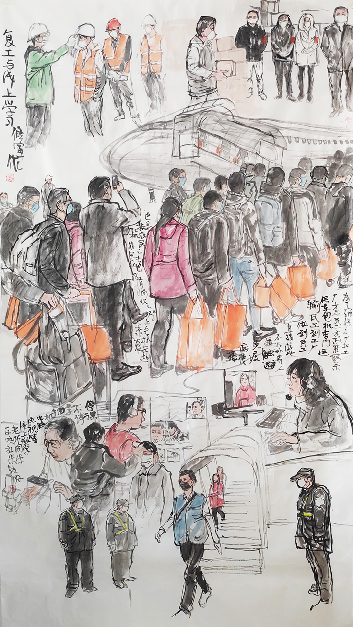 《復(fù)工與線上教學(xué)》中國畫 張修軍