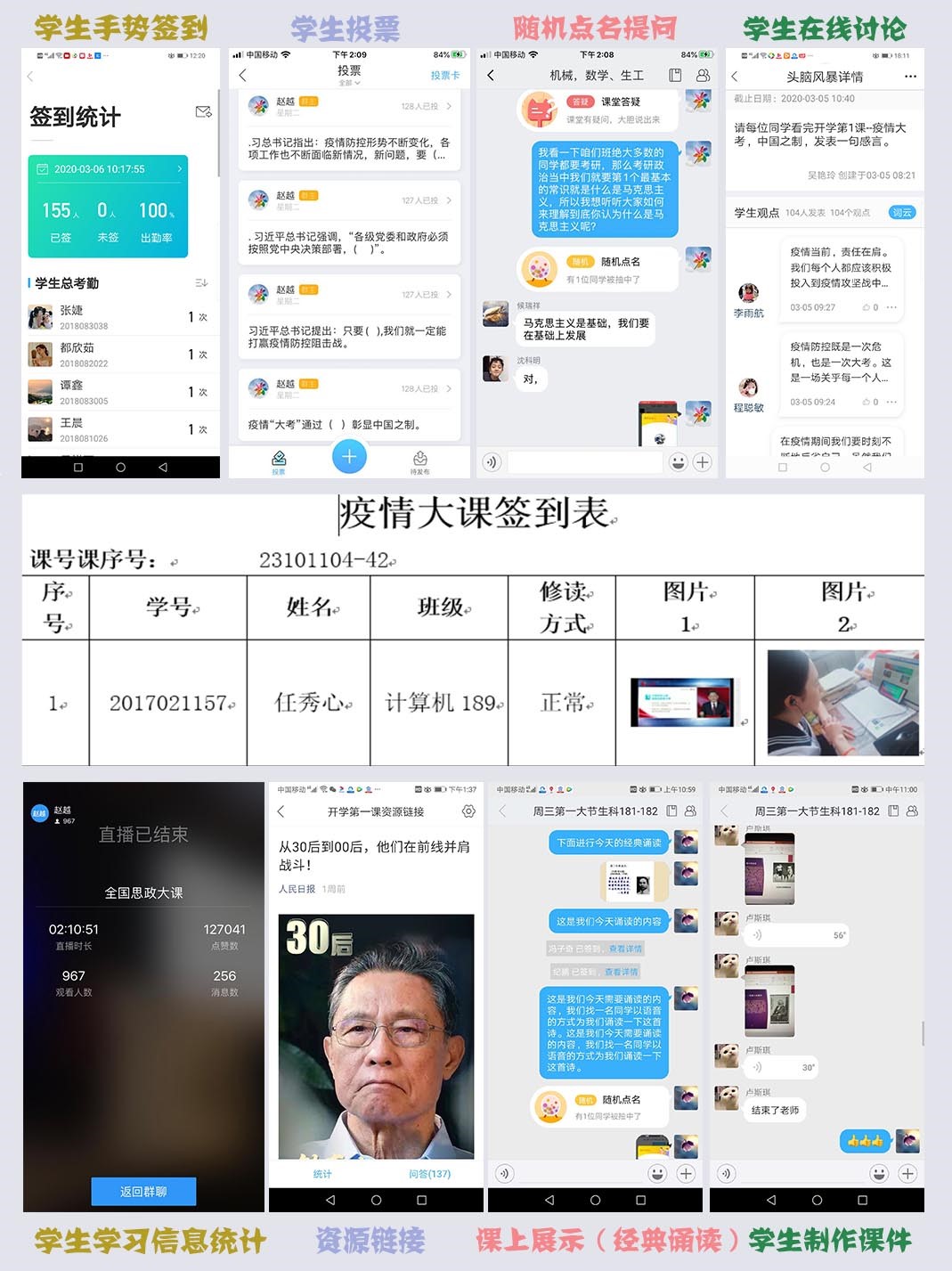 馬克思主義學(xué)院積極發(fā)揮高校思政課落實立德樹人根本任務(wù)的關(guān)鍵課程作用,通過開學(xué)第一課,彰顯中國特色社會主義制度優(yōu)越性;尋找“最可愛的志愿者”,培養(yǎng)大學(xué)生愛國擔(dān)當(dāng)精神;學(xué)生錄制微課、制作PPT,講好抗“疫”思政課;讓歷史與抗“疫”自接對話,增強“四個自信”;“云端”誦讀經(jīng)典,增強 “抗疫”思想動力等形式將“思政課戰(zhàn)疫小課堂”專項活動與國家安全教育日宣傳教育活動相結(jié)合,教育引導(dǎo)大學(xué)生弘揚愛國主義精神,增強“四個意識”,堅定“四個自信”,做到“兩個維護”。