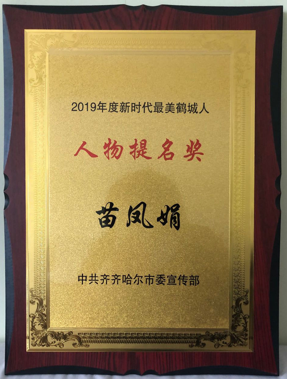 2019年3月起,齊齊哈爾市委宣傳部聯(lián)合市直相關(guān)部門(mén)共同組織開(kāi)展了“新時(shí)代最美鶴城人”推選活動(dòng),經(jīng)各縣(市)區(qū)、市直單位推薦、組織考核、網(wǎng)絡(luò)公示、組委會(huì)審定,市委宣傳部公布了“新時(shí)代最美鶴城人”推選結(jié)果名單,我校通信與電子工程學(xué)院苗鳳娟教授榮獲2019年度“新時(shí)代最美鶴城人”提名獎(jiǎng)。