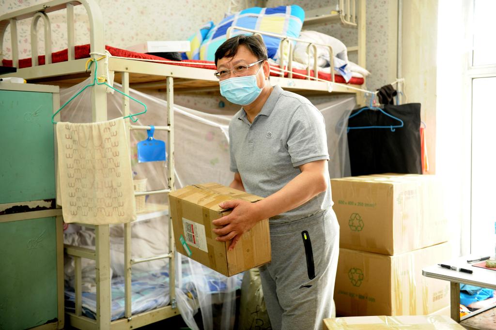 今年機(jī)電工程學(xué)院畢業(yè)生整體人數(shù)多,寢室分布樓層高,學(xué)院教師平均年齡比較高,畢業(yè)生行李打包工作難度很大。為了盡快高質(zhì)量完成學(xué)院相關(guān)工作,機(jī)電工程學(xué)院黨委書記王云鵬帶領(lǐng)全院教師投入到了為畢業(yè)生打包行李的工作中。學(xué)院里很多熟悉王云鵬的老師都知道,王書記患有嚴(yán)重的腰椎間盤突出癥,每當(dāng)病情發(fā)作時(shí),疼的一動(dòng)也不敢動(dòng)。所以一看到他搬重物,就主動(dòng)幫助他。每當(dāng)這時(shí)王云鵬就笑著說,“這個(gè)不沉,我自己能行?!蓖鯐浀囊慌e一動(dòng)感染著學(xué)院里的每一名老師,感動(dòng)著畢業(yè)班的每一名同學(xué),大家相互理解、默契配合,目前,學(xué)院一半以上的寢室已經(jīng)完成了打包郵寄。