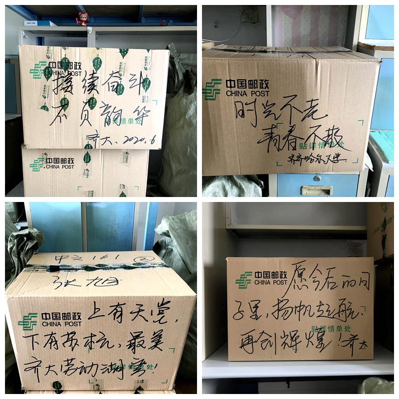 一場(chǎng)歷時(shí)數(shù)年的陪伴與成長(zhǎng),從初秋到盛夏,從遇見到離別,尚未敘盡重逢的思念,離別卻猝不及防的到來。對(duì)于整天和同學(xué)們?cè)谝黄鸬妮o導(dǎo)員老師,今年的畢業(yè)季注定與眾不同,承載著太多的不舍與留戀。文學(xué)與歷史文化學(xué)院學(xué)工辦主任宋菲菲老師在為畢業(yè)班同學(xué)打包行李物品時(shí),看到同學(xué)們大一軍訓(xùn)時(shí)的青澀合影,或是墻上掛著的各種晚會(huì)照片時(shí)常常淚目。在為同學(xué)們標(biāo)注郵寄地址時(shí),她把自己的美好祝福與期許也寫在了行李箱上?!敖永m(xù)奮斗、不負(fù)韶華!”“揚(yáng)帆起航、再創(chuàng)輝煌!”......