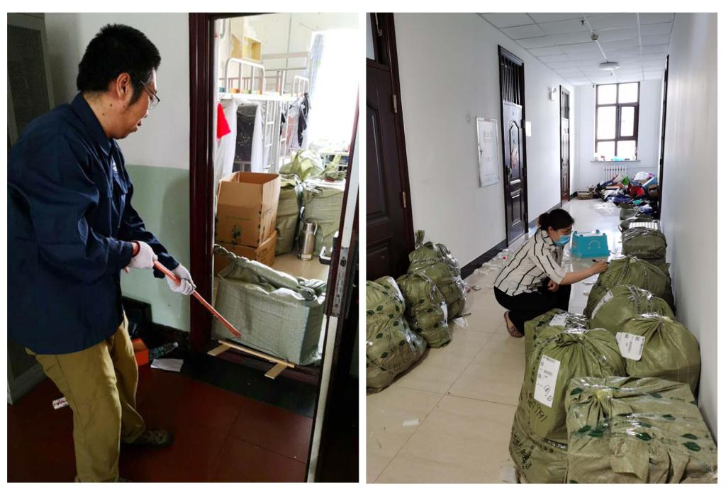 理學(xué)院王永潔、張敬兩位老師雖然年齡比較大,但面對(duì)繁重瑣碎的整理打包工作,她們卻毫不退縮。雖然對(duì)于視頻連線操作不熟悉,但在財(cái)務(wù)處黨員志愿者王瑩彬老師的幫助下,她們憑借著多年工作中培養(yǎng)的默契,及時(shí)順利地完成了學(xué)院布置的全部任務(wù)。大家勸她們要注意休息,可王永潔老師卻總是說“這就像給自己的孩子收拾東西,累不著!”