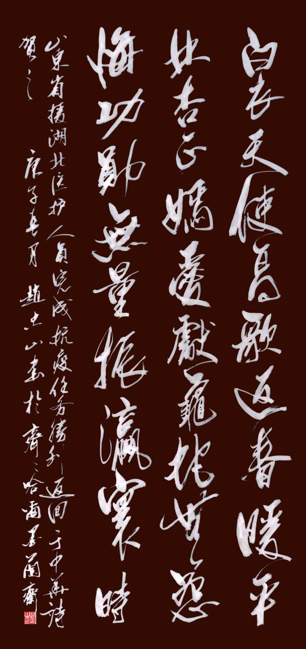 ——山東省援湖北醫(yī)護人員完成抗疫任務勝利返回,于中華詩賀之。庚子春月趙忠山書于齊齊哈爾墨蘭齋