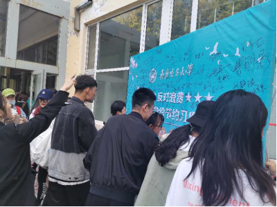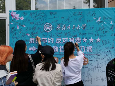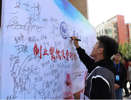 本次活動(dòng)得到了廣大師生的熱情參與和大力支持,到場(chǎng)的老師、同學(xué)們紛紛在簽名板上簽下名字,許下承諾,決心從我做起,從身邊做起,堅(jiān)決制止餐飲浪費(fèi)行為,爭(zhēng)做“反對(duì)浪費(fèi)、厲行節(jié)約”的踐行者、宣傳者和維護(hù)者。