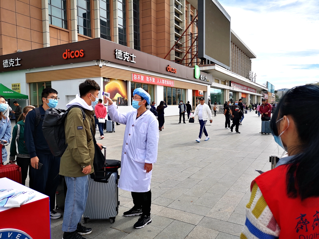 暴風(fēng)雨過后的齊齊哈爾較往年同期溫度要低很多,機(jī)電工程學(xué)院輔導(dǎo)員張國梁早上6:30就跟隨校車去火車站迎接返校同學(xué),他需要負(fù)責(zé)指導(dǎo)學(xué)生掃碼、測溫,幫助學(xué)生拿行李上車,安排學(xué)生有序乘坐校車返校。他說:“天氣雖冷,但是看見學(xué)生回來的那一刻心里是火熱的,我會盡最大努力幫助學(xué)生,讓同學(xué)們感受到回家的溫暖?!?/p>