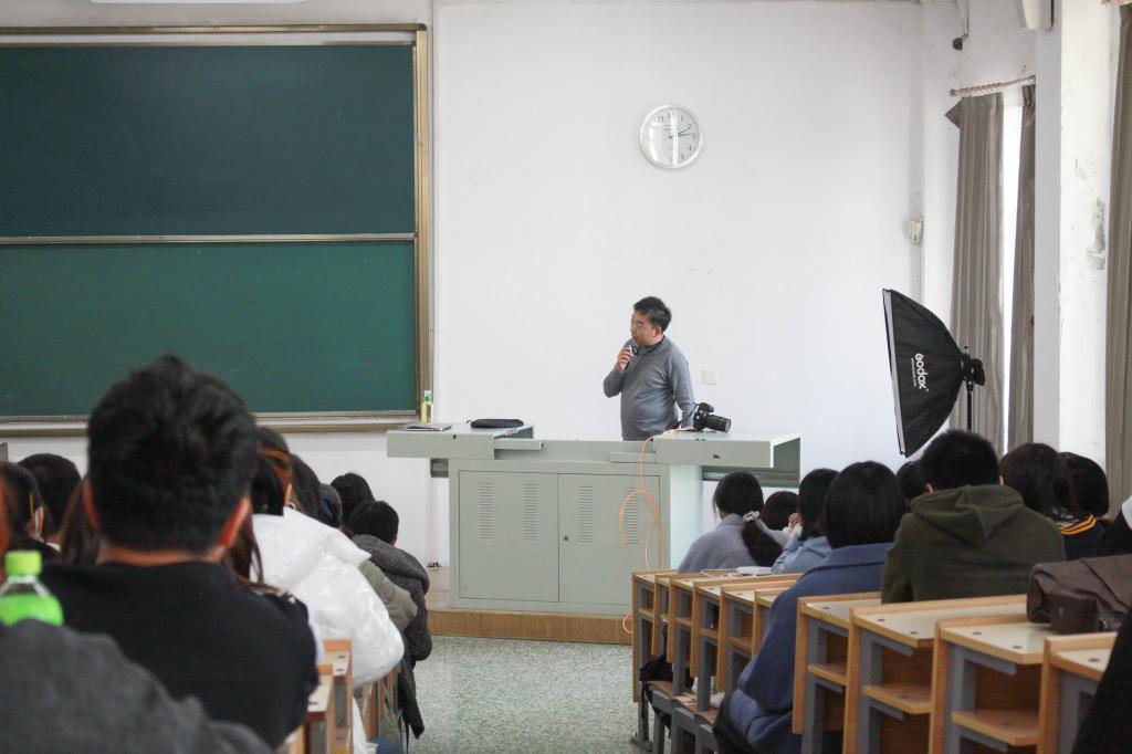 講座中,李賀老師以《用鏡頭發(fā)現(xiàn)新聞中的美》為主題,為大家簡(jiǎn)要介紹了光的運(yùn)用、光圈改變的技巧、如何利用角度拍攝照片等內(nèi)容。他還結(jié)合自己以往拍攝的照片為大家介紹了大光圈、長(zhǎng)焦距拍攝效果的對(duì)比注意事項(xiàng)。全場(chǎng)同學(xué)們跟隨著李老師的講述,身臨其境般感受著他多年從事新聞攝影工作的心路歷程和創(chuàng)作經(jīng)歷。