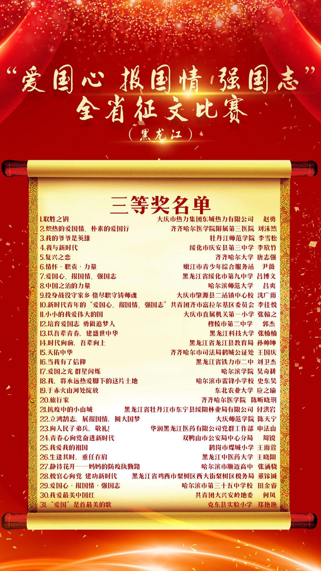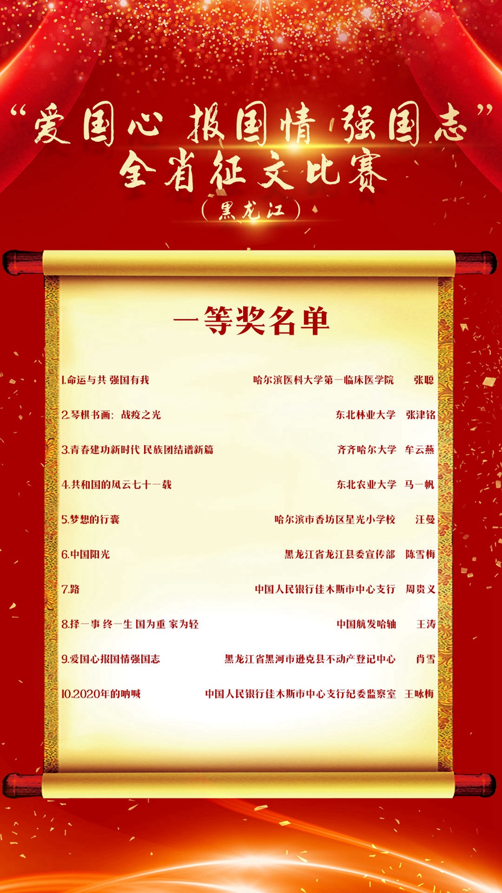 我校兩篇原創(chuàng)作品在學習強國“愛國心·報國情·強國志”主題征文活動(黑龍江?。┲蝎@獎