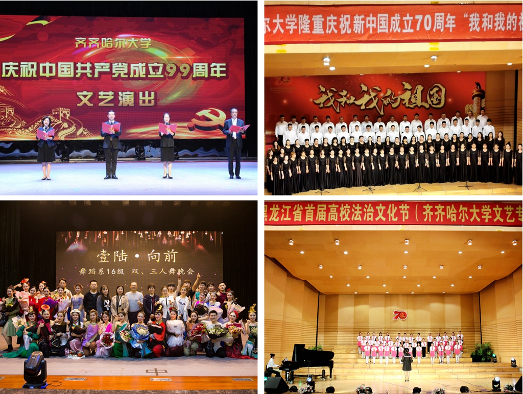 “風(fēng)聲、雨聲、讀書聲、聲聲入耳;家事、國事、天下事、事事關(guān)心”,這是每一名大學(xué)生都應(yīng)該具有的家國情懷。近年來,在鼓勵(lì)學(xué)生主動(dòng)參加活動(dòng)的同時(shí),音樂與舞蹈學(xué)院的教師們也率先垂范,充分發(fā)揮文藝工作者的職責(zé)作用,帶領(lǐng)學(xué)生關(guān)注祖國發(fā)展,把教學(xué)之中的仁愛之心延伸到社會(huì)活動(dòng)中去,聚焦扶貧、小康、發(fā)展、抗疫等主題爭相進(jìn)行藝術(shù)作品創(chuàng)作,其中鋼琴組曲《卜奎印象》《中國的“中”》、抗疫歌曲《故事中國》《你沒有走遠(yuǎn)》《最美的旗幟》《奇跡的顏色》等優(yōu)秀作品獲得國家級(jí)、省級(jí)大獎(jiǎng)。教師們不僅自己創(chuàng)作、表演這些作品,還把這些優(yōu)秀作品引入課堂,實(shí)現(xiàn)社會(huì)實(shí)踐與課堂的有機(jī)融合,將深植于作品中的價(jià)值觀和正能量“基因式”地融入教學(xué)中,培養(yǎng)學(xué)生兼濟(jì)天下的大胸懷。在“奇跡中國”原創(chuàng)思政作品音樂會(huì)的16首作品中,通過小康路上、抗疫贊歌、百年畫卷三個(gè)樂章,歌頌了扶貧攻堅(jiān)、抗疫逆行、追夢奮斗中我黨、我國人民不忘初心,砥礪前行的閃光形象。演出中,師生共同體會(huì)仁愛之心,深情演繹家國情懷,讓思政元素為社會(huì)實(shí)踐活動(dòng)鑄魂,成為課堂教學(xué)的有力補(bǔ)充。