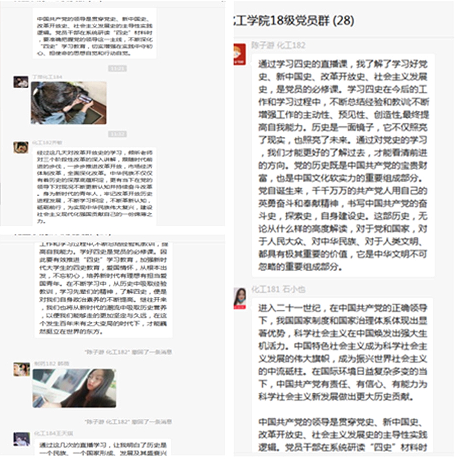 我校師生積極收聽收看了“四史學(xué)習(xí)教育·微領(lǐng)學(xué)”網(wǎng)絡(luò)直播課堂,大家紛紛表示,通過本次網(wǎng)絡(luò)直播課的學(xué)習(xí),深刻理解認(rèn)識到了“四史”學(xué)習(xí)的重要意義,在今后的學(xué)習(xí)和工作中會以史為鑒、砥礪前行,不忘初心、牢記使命,不斷增強對共產(chǎn)黨執(zhí)政規(guī)律、社會主義建設(shè)規(guī)律、人類社會發(fā)展規(guī)律的認(rèn)識和把握,切實補足精神之鈣、把穩(wěn)思想之舵,堅定對馬克思主義一以貫之的信仰,對中國特色社會主義矢志不渝的信念,對實現(xiàn)中華民族偉大復(fù)興堅定不移的信心,時刻明確努力前進(jìn)的方向,謹(jǐn)記實現(xiàn)中華民族偉大復(fù)興中國夢的歷史使命,承擔(dān)起黨和人民賦予的歷史重任,以實際行動迎接建黨100周年。