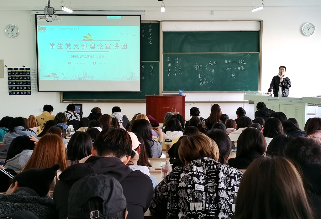 為了更好的開展對大學生的黨史知識宣講,學院成立了學生黨支部理論宣講團,并于4月14日圍繞《中國共產黨簡史》一書開展了首場校內宣講,學生支部書記郭雪冬,學生黨員尹圣瑤、徐雪、楊闖、李安佳、吳婉姝分別進行黨史專題宣講。