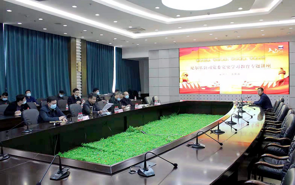 張春波副教授在嫩江尼爾基水利水電有限責任公司作《矢志初心勇?lián)敽`路藍縷創(chuàng)輝煌》黨史專題宣講。