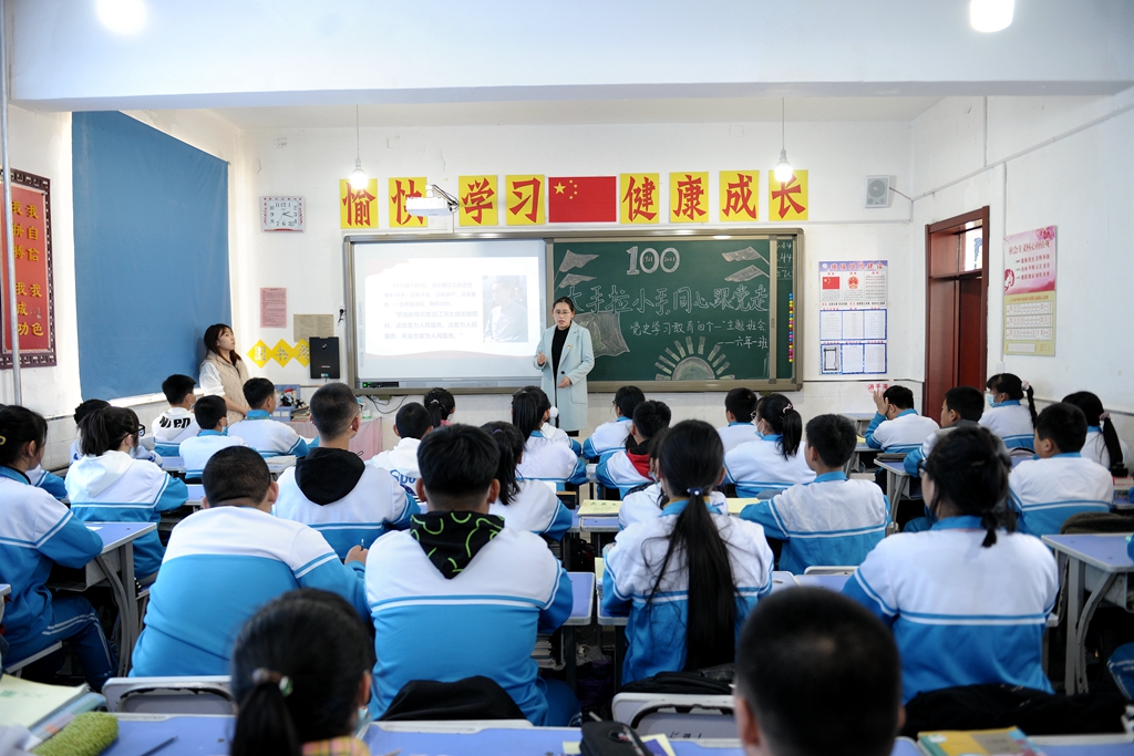 馬克思主義學院還積極創(chuàng)新宣講模式,青年教師讀書會的部分教師到訥河市六合鎮(zhèn)中心校開展“大手拉小手 同心跟黨走”送黨史宣講到縣鄉(xiāng)村中小學活動。此次宣講活動以“四個一”為主要內容,根據中小學生的年齡特點和認知水平確定了“演唱一支黨的贊歌”“講述一個黨的故事”“朗誦一首黨的詩歌”“寫一封給黨的書信”等活動形式,活動內容豐富、形式新穎、富有教育意義,受到了中小學生的熱烈歡迎。