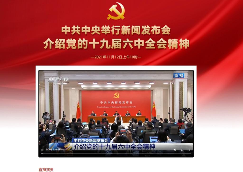 11月12日上午10時(shí),中共中央舉行新聞發(fā)布會(huì),介紹了黨的十九屆六中全會(huì)精神。