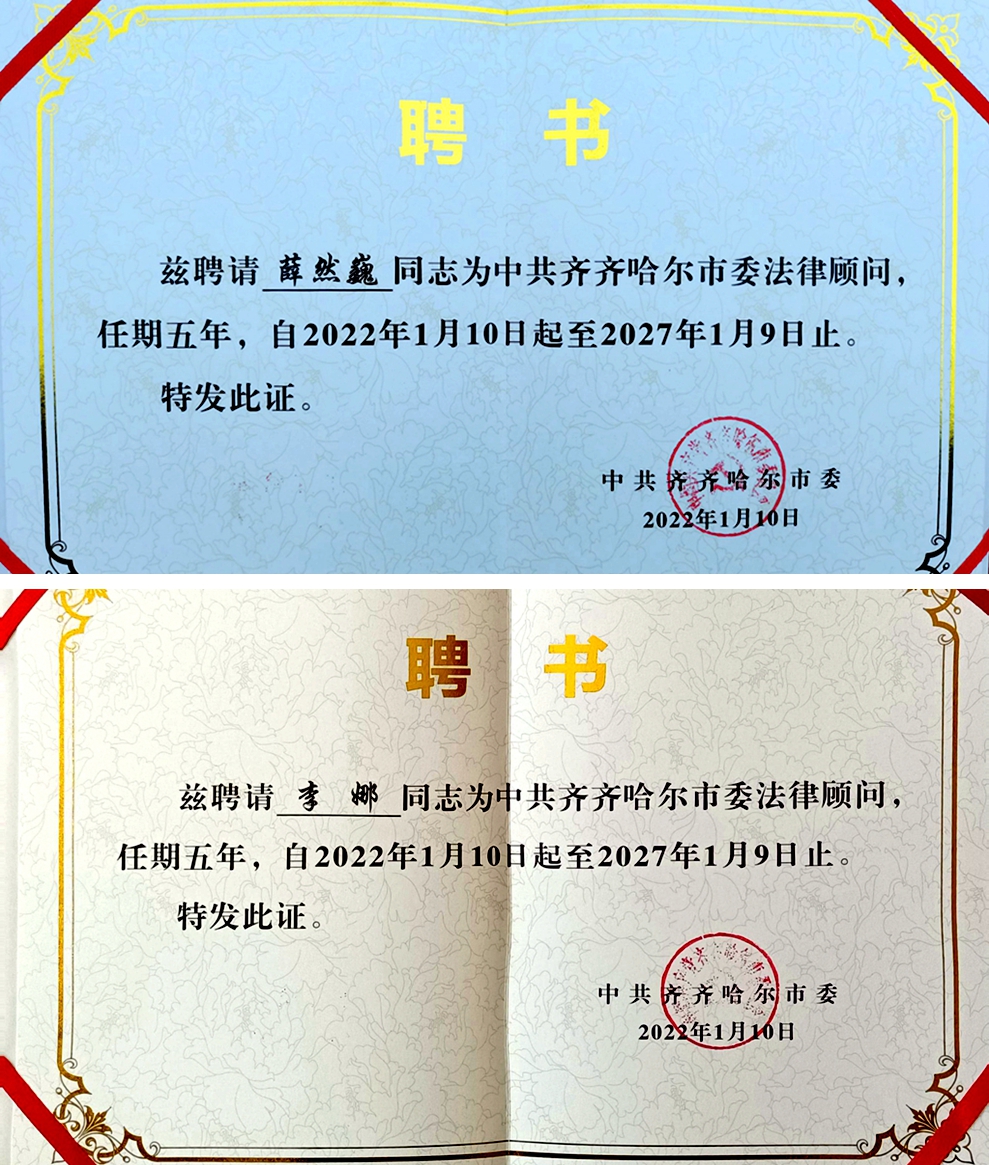 我校兩名教師受聘為中共齊齊哈爾市委法律顧問(wèn)