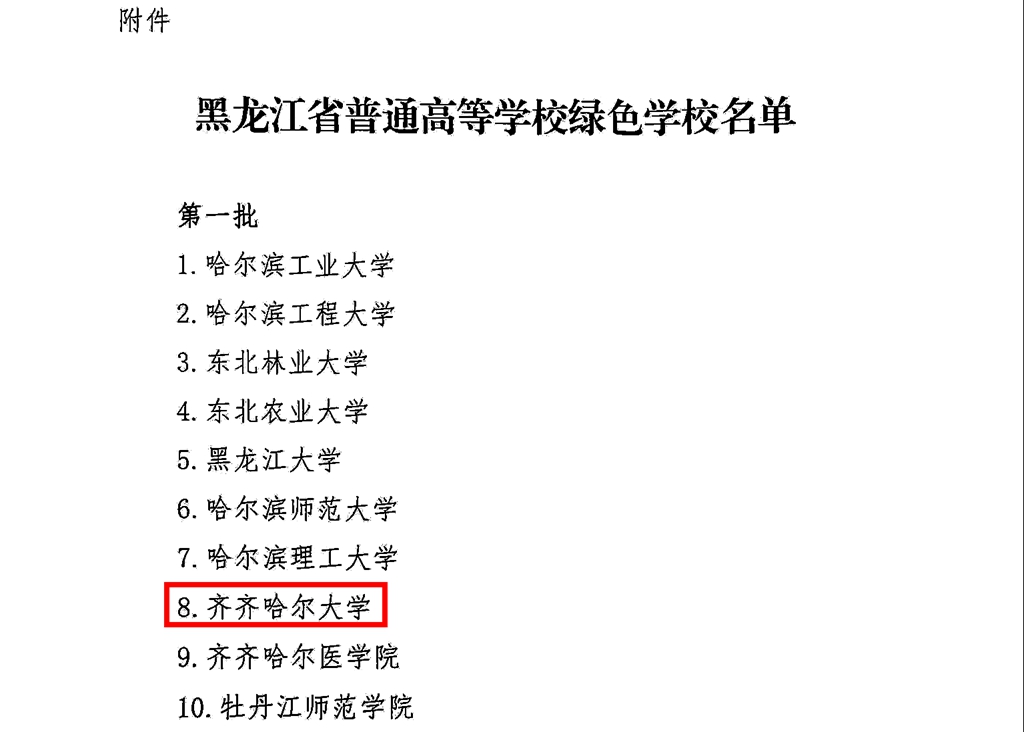 日前,省教育廳、省發(fā)改委發(fā)布黑龍江省高校綠色學校創(chuàng)建工作評審結果,我校獲得黑龍江省高校第一批“綠色學?!睒s譽稱號。