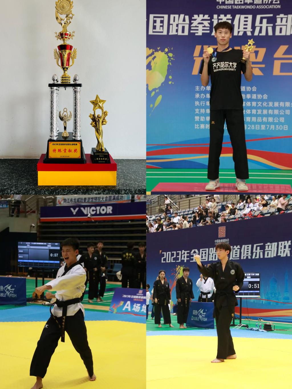 本次賽事由中國跆拳道協(xié)會主辦,黑龍江省跆拳道協(xié)會承辦,共吸引了來自北京、河北、黑龍江等省市88支代表隊1340名選手參賽。我校跆拳道隊叢蓉、于嘉增、張建、張志、潘浩、石雋滔、趙鑫、郭晟宇、張璨、王冰寒、高佳悅、李建潮12名隊員在體育學(xué)院修月老師的帶領(lǐng)下參加了比賽。在比賽過程中,我校參賽選手也積極參與了大會開幕式的表演,并贏得了與會領(lǐng)導(dǎo)與兄弟院校的一致好評,獲得了主辦方授予的特殊貢獻獎。