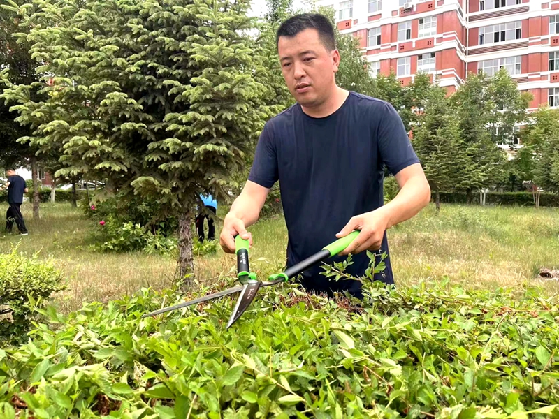 “緊密聯(lián)系師生,扎根基礎(chǔ)服務(wù)”,是石振宇的工作信條。作為一名后勤干部,他始終不忘服務(wù)重點(diǎn)是師生,始終牢記全心全意為人民服務(wù)的根本宗旨??倓?wù)科負(fù)責(zé)全校的室外衛(wèi)生保潔、綠化美化工作。為保證校園環(huán)境的干凈、整潔,石振宇堅(jiān)持每天提前一個(gè)小時(shí)到學(xué)校例行對(duì)四個(gè)校區(qū)進(jìn)行檢查巡視,遇見衛(wèi)生情況不達(dá)標(biāo)或者影響師生出行安全的高大喬木都會(huì)逐一記錄,為后續(xù)的修剪申報(bào)與實(shí)施做好準(zhǔn)備工作,2022年度他帶領(lǐng)員工修剪存有安全隱患的樹木共計(jì)55株;發(fā)現(xiàn)部分樹種出現(xiàn)蟲害的情況后,他第一時(shí)間聯(lián)系林學(xué)專家虛心請(qǐng)教治理辦法,經(jīng)多次試驗(yàn)探索終于找到了一種經(jīng)濟(jì)實(shí)惠、可以從源頭消滅害蟲天牛的方法,組織員工及時(shí)對(duì)受侵害的45株糖槭進(jìn)行了注射及噴涂處理,防止了受害面積的進(jìn)一步擴(kuò)大;綠化工作是繁重而枯燥的,但石振宇堅(jiān)持苦中作樂,炎炎夏日頭戴草帽手持工具和其他同事一起栽種花卉、割草、修剪綠籬等,去年夏季共將8000余株草花栽種在各花壇和花池中,利用灑水車和水帶對(duì)校園綠地灌溉16次。