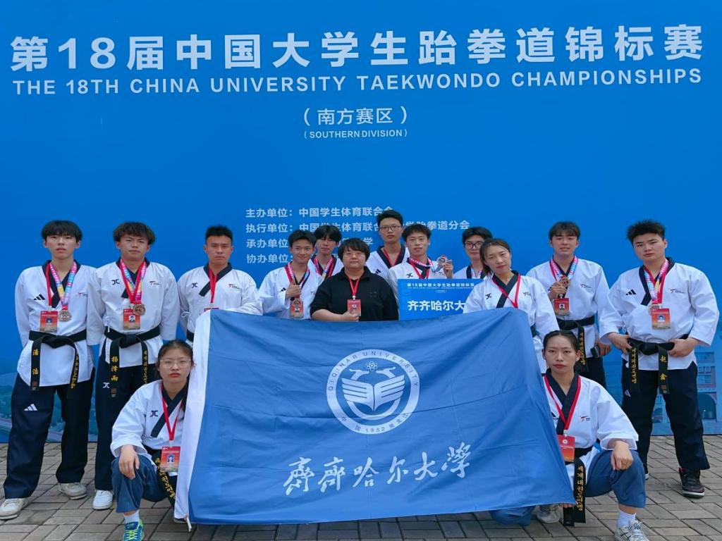 5月21日至25日,第18屆中國大學(xué)生跆拳道錦標(biāo)賽在湖南長沙明德望城學(xué)校體育館舉行,來自全國223所高校的近2000名運動員參賽。經(jīng)過多日的激烈角逐,我校跆拳道隊獲得了1銀、4銅、5個第5名的優(yōu)異成績,隊長石雋滔獲得全國高校跆拳道“優(yōu)秀運動員”稱號。