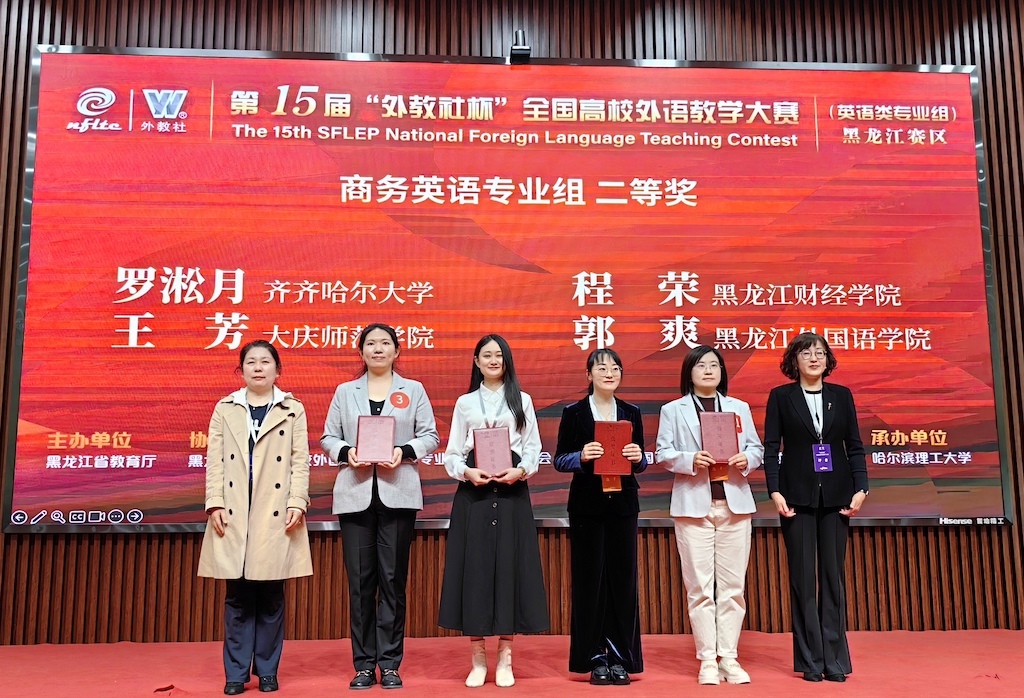 日前,由黑龍江省教育廳主辦,黑龍江省高等學校外國語言文學類專業(yè)教學指導委員會、黑龍江省外國語學會和上海外語教育出版社協(xié)辦,哈爾濱理工大學承辦的第十五屆“外教社杯”全國高校外語教學大賽(英語類專業(yè)組)黑龍江賽區(qū)決賽落下帷幕。經過激烈的角逐,來自全省各大高校英語專業(yè)組10位優(yōu)秀教師和商務英語組7位優(yōu)秀教師入圍黑龍江賽區(qū)的決賽。最終,我校外國語學院教師王楠榮獲英語專業(yè)組一等獎,青年教師羅淞月榮獲商務英語組二等獎。