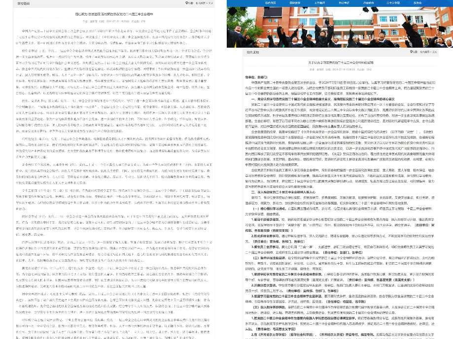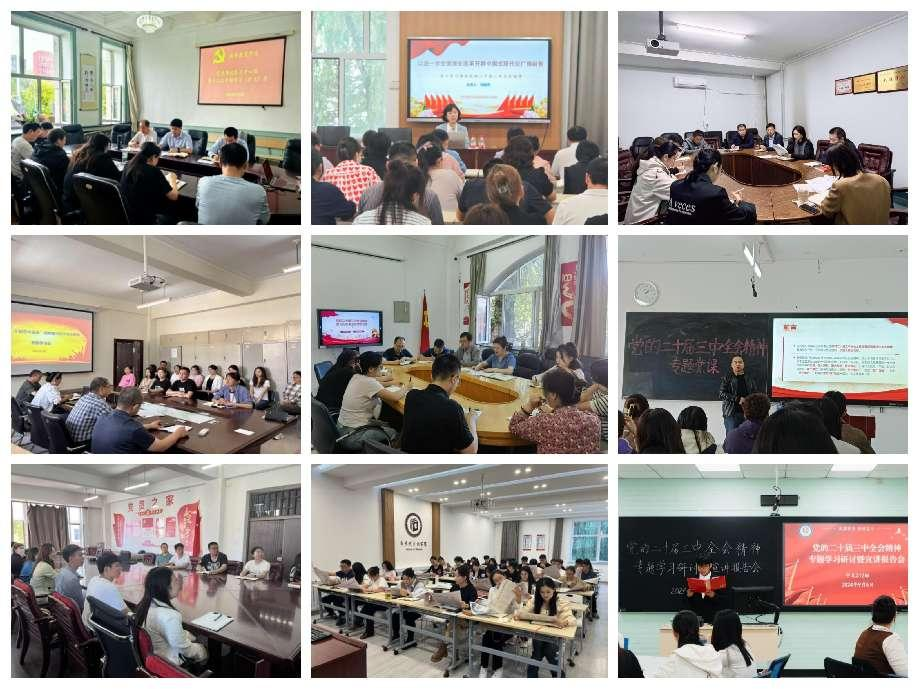 學(xué)校黨委高站位統(tǒng)籌謀劃。堅持把學(xué)習(xí)好宣傳好貫徹好黨的二十屆三中全會精神作為當(dāng)前和今后一個時期的重大政治任務(wù)。7月20日,學(xué)校黨委召開常委會會議,傳達(dá)學(xué)習(xí)了黨的二十屆三中全會精神,要求全校黨員干部和師生員工要深化黨的創(chuàng)新理論武裝,以高度的政治自覺、思想自覺和行動自覺,切實推動黨的二十屆三中全會作出的重大決策部署在學(xué)校落地落實。黨委宣傳部高標(biāo)準(zhǔn)部署推動。全會結(jié)束后,第一時間組織干部師生熱議全會精神,7月19日印發(fā)《關(guān)于認(rèn)真學(xué)習(xí)宣傳黨的二十屆三中全會精神的通知》,對全校學(xué)習(xí)宣傳黨的二十屆三中全會精神作出具體部署,細(xì)化工作任務(wù),引導(dǎo)全校黨員干部和師生員工深化思想認(rèn)識、匯聚改革力量。校院協(xié)同互促,高質(zhì)量組織開展。校院兩級黨委理論學(xué)習(xí)中心組充分發(fā)揮示范帶動作用,把黨的二十屆三中全會精神作為中心組學(xué)習(xí)的重要學(xué)習(xí)內(nèi)容,領(lǐng)導(dǎo)干部先學(xué)一步、學(xué)深一層,通過集中學(xué)習(xí)研討、撰寫心得體會、開展調(diào)查研究、組織實踐研學(xué)等形式強(qiáng)化學(xué)習(xí)效果,提升學(xué)習(xí)質(zhì)量;各基層黨委(直屬黨支部)、各部門及時召開專題學(xué)習(xí)會議,各黨支部通過“三會一課”、主題黨日活動等方式,組織黨員干部和師生員工集中開展黨的二十屆三中全會精神學(xué)習(xí)研討;各單位、各部門根據(jù)工作實際需求,創(chuàng)新學(xué)習(xí)方式、活化學(xué)習(xí)載體,依托教職工政治理論學(xué)習(xí)、青年理論學(xué)習(xí)小組、學(xué)生黨員集體閱讀《人民日報》等有效載體,高質(zhì)量推動黨的二十屆三中全會精神學(xué)習(xí)真正實現(xiàn)“點(diǎn)對點(diǎn)、面對面、全覆蓋”,迅速在全校掀起學(xué)習(xí)宣傳全會精神熱潮。