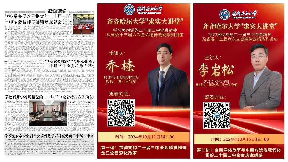 媒體矩陣合力講。校園新聞媒體發(fā)揮媒體融合優(yōu)勢,大力度、高頻度發(fā)聲,及時跟進(jìn)報道集中宣講情況,全景式反映宣講的生動場景;同時,依托新媒體創(chuàng)新拓展宣講方式,組織開展了齊齊哈爾大學(xué)“求實大講堂”——學(xué)習(xí)貫徹黨的二十屆三中全會精神及省委十三屆六次全會精神云端系列講座,讓全會精神宣講“乘云而上”,引發(fā)全校師生的廣泛共鳴……一場場分眾化、對象化、互動化、沉浸式的理論宣講活動,既接地氣又有生氣,讓廣大黨員干部、師生員工思路更清了、方向更明了、干勁更足了,切實為推動龍江高質(zhì)量發(fā)展、可持續(xù)振興和奮力譜寫有特色高水平應(yīng)用型綜合大學(xué)建設(shè)新篇章匯聚磅礴力量。