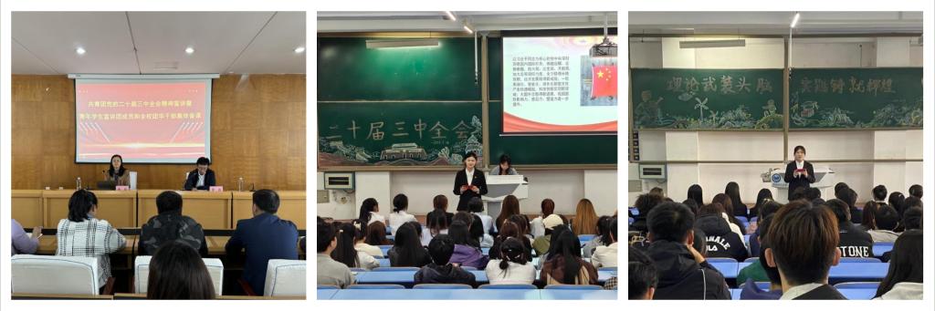 青年學(xué)生自己講。校團(tuán)委組織“青年學(xué)生黨的創(chuàng)新理論宣講團(tuán)”在全校團(tuán)員和青年中開展了3場黨的二十屆三中全會精神專題宣講,青年學(xué)生用“青言青語”將“黨的二十大以來黨和國家事業(yè)取得的重大成就”講清、講準(zhǔn)、講活,讓思想的光芒照亮青年成長成才之路,引導(dǎo)廣大青年錨定目標(biāo)向前進(jìn)、勤奮學(xué)習(xí)長本領(lǐng)、團(tuán)結(jié)奮斗建新功,更加主動為中國式現(xiàn)代化挺膺擔(dān)當(dāng)。