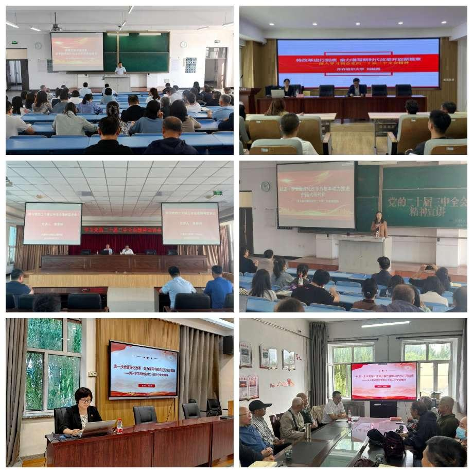 凝聚改革共識,激發(fā)奮進(jìn)力量。為深入學(xué)習(xí)宣傳貫徹黨的二十屆三中全會精神,教育引導(dǎo)全校師生深刻領(lǐng)悟黨的二十屆三中全會精神的核心要義、精神實質(zhì)和實踐要求,切實把思想和行動統(tǒng)一到全會精神上來,統(tǒng)一到以習(xí)近平同志為核心的黨中央決策部署上來,把智慧和力量凝聚到推動學(xué)校高質(zhì)量發(fā)展上來,按照學(xué)校黨委統(tǒng)一安排部署,自7月中旬開始近三個月來,我校緊密結(jié)合工作實際,通過多種形式積極開展黨的二十屆三中全會精神學(xué)習(xí)、宣講活動,推動黨的二十屆三中全會精神走深走實、落地生根。