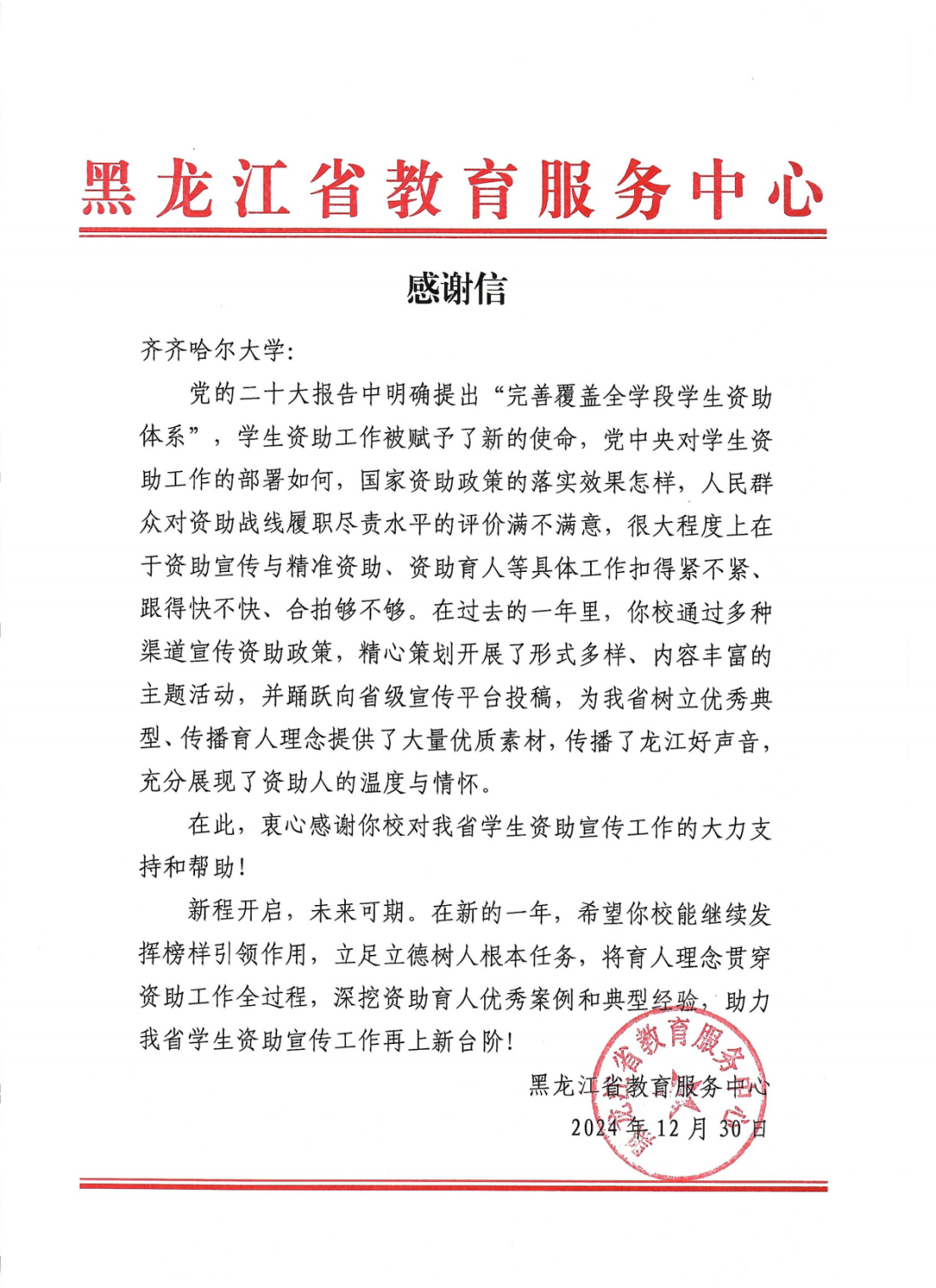 近日,省教育服務(wù)中心向我校發(fā)來感謝信,對我校近一年來通過多種渠道宣傳資助政策,精心策劃開展形式多樣、內(nèi)容豐富的主題活動提出表揚,并對我校踴躍向省級宣傳平臺投稿,大力支持省學(xué)生資助宣傳工作表示感謝。