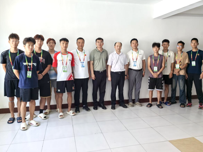 范鐵明一行來到代表團(tuán)駐地,詳細(xì)詢問隊員們的住宿、餐飲、訓(xùn)練恢復(fù)及賽事安排等情況,對大家展現(xiàn)出的飽滿精神和昂揚(yáng)斗志表示高度贊賞,并與教練員、運(yùn)動員們親切交談。他寄語參賽師生:“弘揚(yáng)體育精神,嚴(yán)守賽風(fēng)賽紀(jì),堅定必勝信心,賽出齊大風(fēng)采!”叮囑參賽隊員們,務(wù)必做好防曬降溫等自我防護(hù),要求體育學(xué)院全力做好后方支援,解決運(yùn)動員后顧之憂,做代表團(tuán)的堅強(qiáng)后盾。