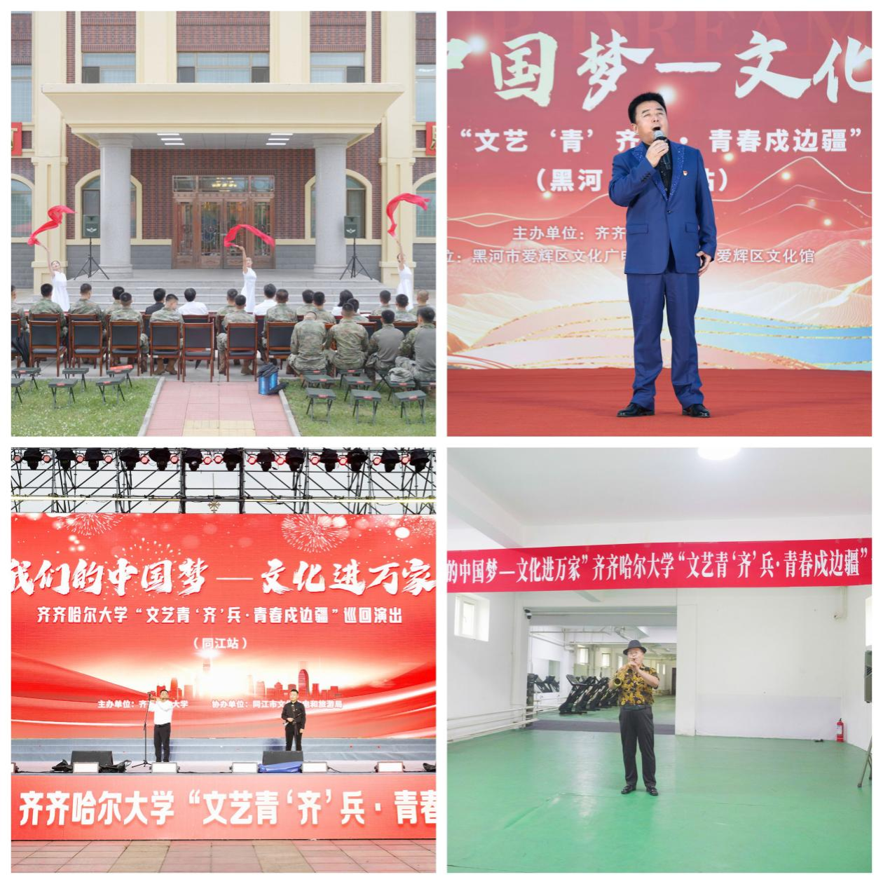 為深入貫徹落實黨的二十大關(guān)于推進文化自信自強的戰(zhàn)略部署,積極響應(yīng)中宣部“我們的中國夢——文化進萬家”活動號召,八一建軍節(jié)前夕,學校黨委宣傳部、團委、音樂與舞蹈學院共同籌劃,選拔部分黨員師生和業(yè)務(wù)骨干,組建齊齊哈爾大學文藝青“齊”兵小分隊,懷揣著對黨的忠誠,開啟了文化戍邊暑期“三下鄉(xiāng)”實踐之旅,在祖國北疆漠河到撫遠4300余公里的邊境線上踏歌而行,用藝術(shù)傳遞黨的聲音,用文化凝聚民族共識,用真情歌頌軍民情誼,譜寫了一曲新時代文化戍邊的青春贊歌。