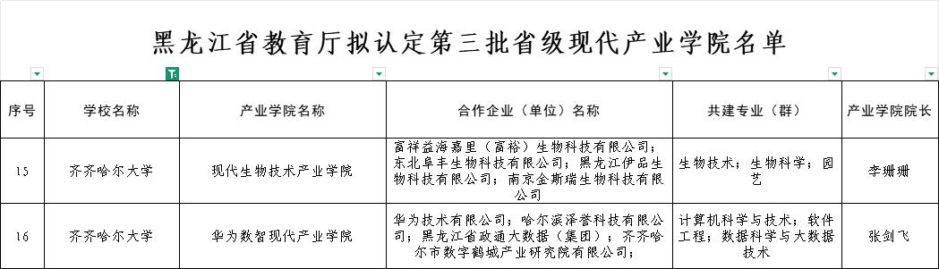 近日,黑龍江省教育廳公示了第三批省級現(xiàn)代產(chǎn)業(yè)學(xué)院名單。我校依托生命科學(xué)與農(nóng)林學(xué)院建設(shè)的“現(xiàn)代生物技術(shù)產(chǎn)業(yè)學(xué)院”和依托計算機(jī)與控制工程學(xué)院建設(shè)的“華為數(shù)智現(xiàn)代產(chǎn)業(yè)學(xué)院”雙雙獲批。標(biāo)志著學(xué)校在產(chǎn)教融合、深化校企協(xié)同育人和服務(wù)區(qū)域經(jīng)濟(jì)社會發(fā)展方面邁上了新的臺階。
