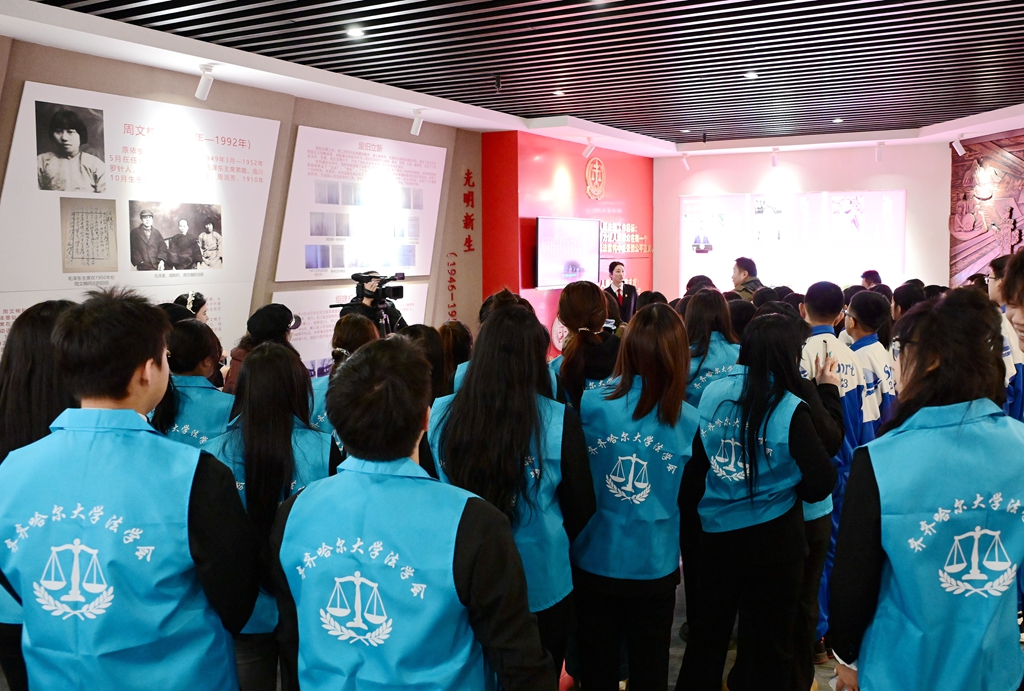 在齊齊哈爾市中院院史館,一幅幅歷史圖片、一件件珍貴實物、一段段文字記載,生動展現(xiàn)了人民司法事業(yè)的光輝歷程和本地法院的發(fā)展足跡。同學(xué)們跟隨講解員凝神駐足,聆聽講解,共同回顧我國法治建設(shè)的艱辛與榮光,體悟法治精神的磅礴力量。