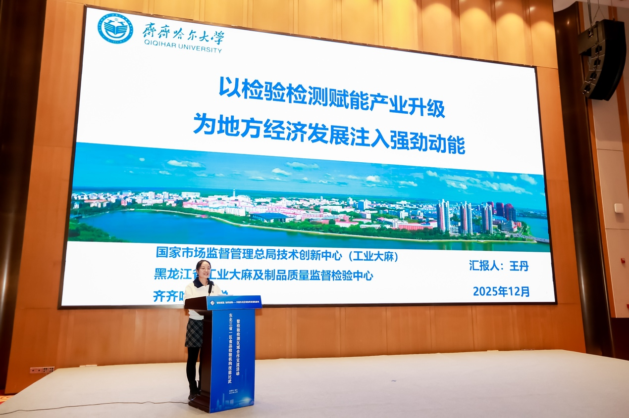 2025年12月10日至12日,由內(nèi)蒙古、遼寧、吉林、黑龍江四?。▍^(qū))市場監(jiān)管部門聯(lián)合舉辦的“東北三省一區(qū)檢驗檢測區(qū)域合作交流活動”在內(nèi)蒙古自治區(qū)包頭市舉行?;顒又校稏|北三省一區(qū)檢驗檢測促進產(chǎn)業(yè)發(fā)展優(yōu)秀案例》正式發(fā)布。經(jīng)齊齊哈爾市市場監(jiān)督管理局推薦,由東北三省一區(qū)市場監(jiān)管部門組織專家嚴(yán)格遴選,我?!耙詸z驗檢測賦能產(chǎn)業(yè)升級,為地方經(jīng)濟發(fā)展注入強勁動能”案例憑借其在服務(wù)我省優(yōu)勢特色漢麻產(chǎn)業(yè)、推動產(chǎn)業(yè)質(zhì)量升級中的創(chuàng)新實踐與突出成效,最終成功入選。國家市場監(jiān)督管理總局技術(shù)創(chuàng)新中心(工業(yè)大麻)骨干教師王丹作為我省代表參會,以《以檢驗檢測賦能產(chǎn)業(yè)升級,為地方經(jīng)濟發(fā)展注入強勁動能》為題作了經(jīng)驗分享。