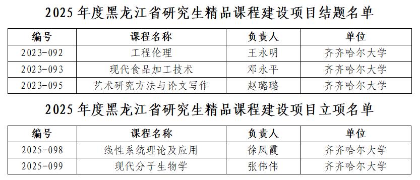 近日,黑龍江省教育廳正式公布了卓越研究生培養(yǎng)模式改革創(chuàng)新建設項目績效評價通過名單,以及2025年度研究生精品課程建設項目結題與立項名單。