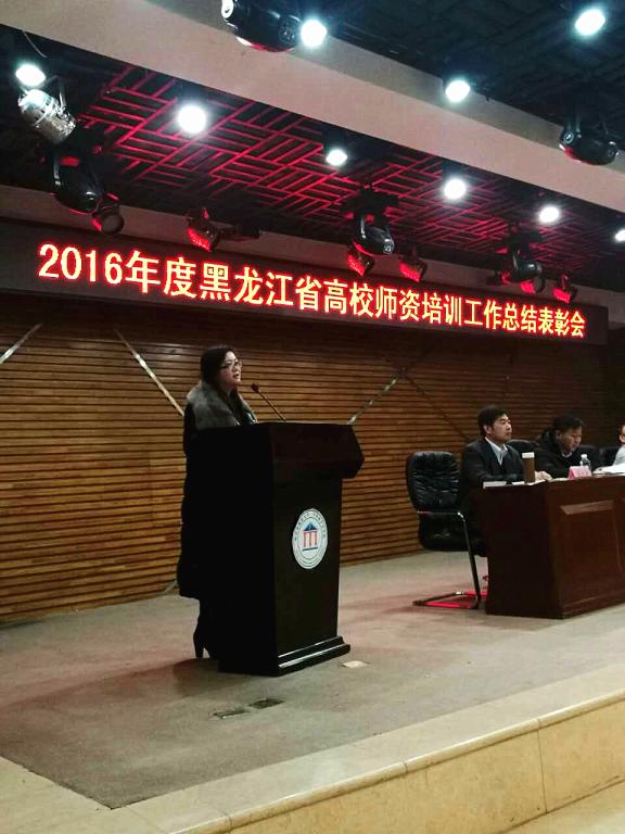 1月5日,2015-2016年度黑龍江省高校師資培訓(xùn)工作表彰會(huì)在哈爾濱師范大學(xué)夢(mèng)溪賓館二樓會(huì)議廳隆重召開(kāi)。哈爾濱師范大學(xué)黨委副書(shū)記蔣晶潔、黑龍江省教育廳職業(yè)教育與成人教育處處長(zhǎng)丁哲學(xué)、高等教育處處長(zhǎng)蔣鯤、高等教育處副處長(zhǎng)王躍然等出席了會(huì)議,我校高教研究與教學(xué)質(zhì)量評(píng)估中心主任劉省非參加了會(huì)議,會(huì)議由省高校師培中心常務(wù)副主任梁大戰(zhàn)主持。