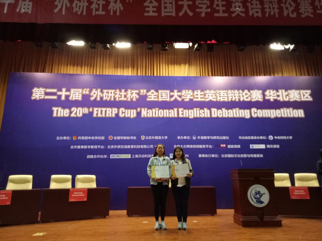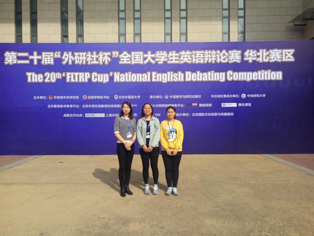 為了進(jìn)一步豐富大學(xué)生校園文化,引導(dǎo)和幫助學(xué)生強(qiáng)化英語學(xué)習(xí)意識(shí)、培養(yǎng)國際眼光、提高獨(dú)立思考、語言表達(dá)、組織協(xié)調(diào)能力,4月2日至4月4日第二十屆“外研社杯”全國大學(xué)生英語辯論賽華北地區(qū)決賽在中央財(cái)經(jīng)大學(xué)舉行,在學(xué)校和學(xué)院領(lǐng)導(dǎo)的大力支持下,我校外國語學(xué)院英語專業(yè)學(xué)生陳煒、陳彥宇代表我校參加了本次比賽并榮獲三等獎(jiǎng),外國語學(xué)院英語系孫舒老師被評(píng)為“優(yōu)秀評(píng)委”。