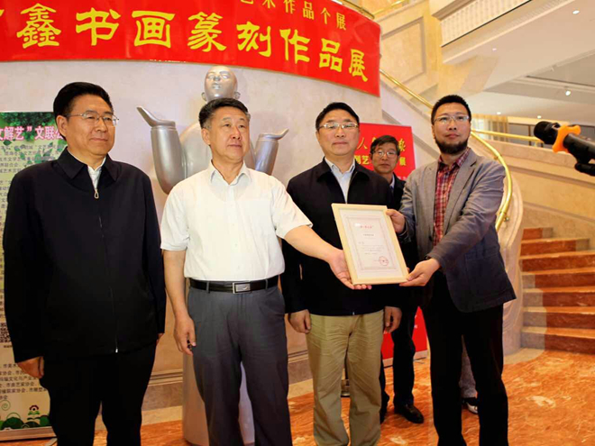 開幕式上張戈、高景洲、馬立群共同為何鑫頒發(fā)了展覽榮譽證書。李國勝代表鶴城藝術宮接受了何鑫捐贈的書法作品。齊齊哈爾市文化藝術界知名人士、齊齊哈爾大學師生、廣大書畫愛好者、新聞媒體近三百人參加活動。