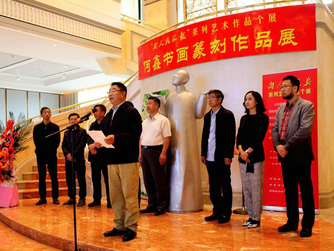 何鑫在致辭中說,我感恩這個中華民族偉大復興,中華傳統(tǒng)文化日漸覺醒的偉大時代。感恩各級領導、師長長期以來對我的關懷和培養(yǎng)。感恩家鄉(xiāng)人民、同事朋友、書道同仁一如既往的支持和鼓勵!作為藝術家,要對藝術真誠,要對歷史負責,更要有時代擔當。這次展覽對我是一個激勵,我對家鄉(xiāng)的歷史文化積淀有自信,對自已的藝術堅守有自信,對領導的正確引領有自信,對齊齊哈爾市書法事業(yè)的未來發(fā)展有自信。他表示,將以此為新的起點,不負眾望,奮力前行,為繁榮發(fā)展書法事業(yè)貢獻自己的力量。