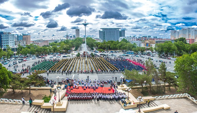 3500人共同演奏了《我和你》《歡樂的達斡爾》《我愛你塞北的雪》三首曲目,或舒緩溫情、或激昂歡快、或優(yōu)美深情,拉開了丁笛演奏的序幕;其場面壯觀,令人震撼。