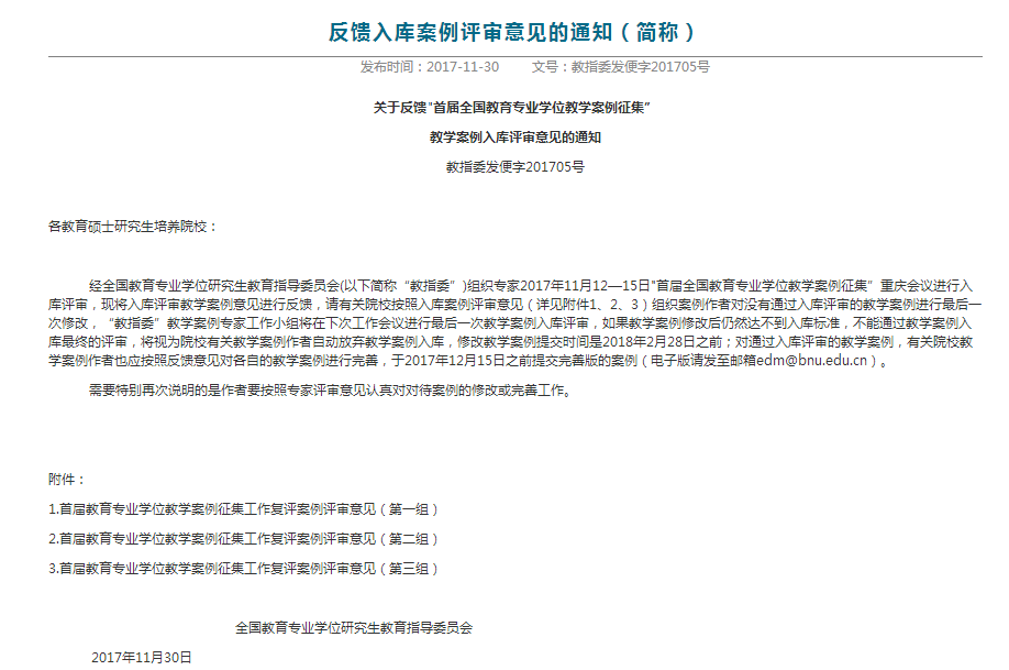 近日,全國教育專業(yè)學(xué)位研究生教育指導(dǎo)委員會發(fā)布了《關(guān)于反饋"首屆全國教育專業(yè)學(xué)位教學(xué)案例征集”教學(xué)案例入庫評審意見的通知》,我校外國語學(xué)院李凱華、王云老師共同提交的《W老師的一堂高中英語任務(wù)型教學(xué)課》教學(xué)案例成功入選中國專業(yè)學(xué)位教學(xué)案例中心案例庫,成為我校首篇入庫案例。