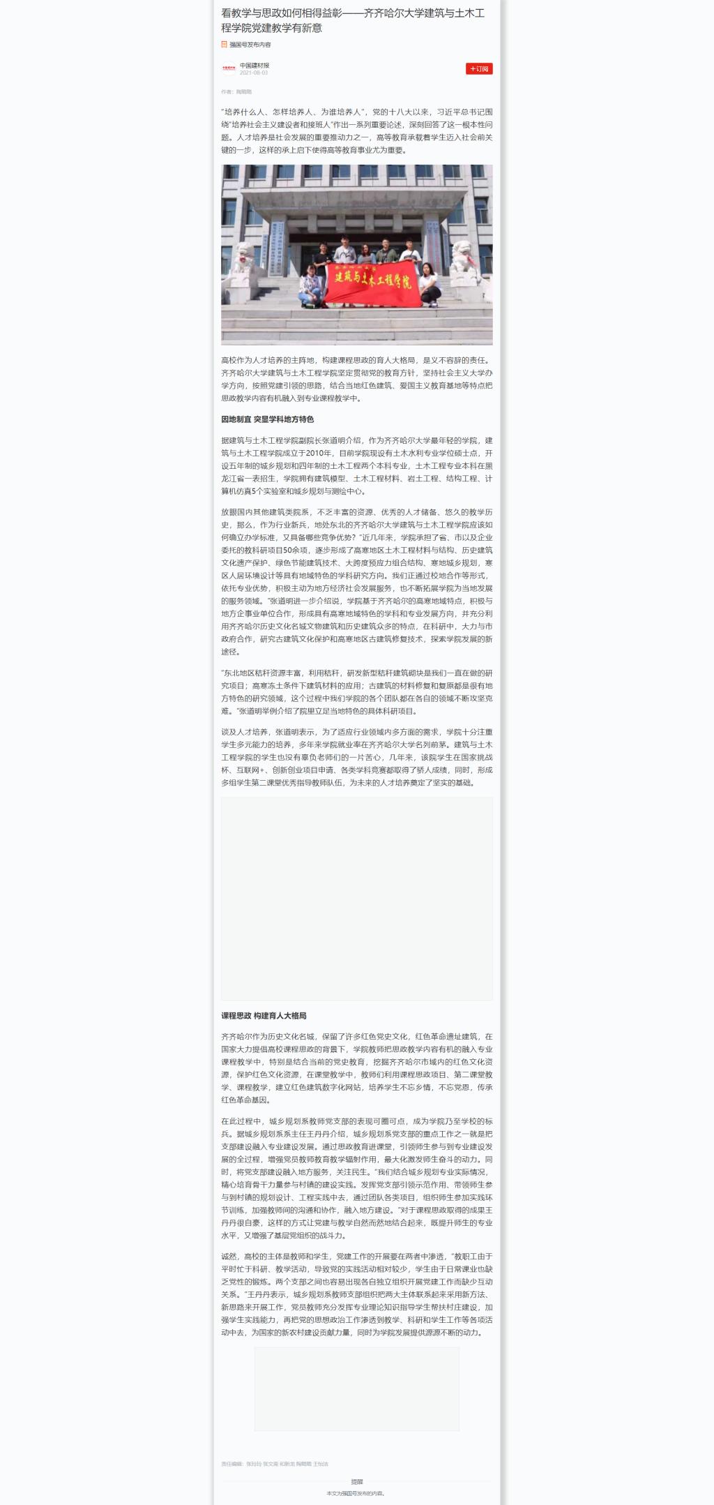 下一條:【今日頭條】齊齊哈爾大學建筑與土木工程學院 教學與思政相得益彰