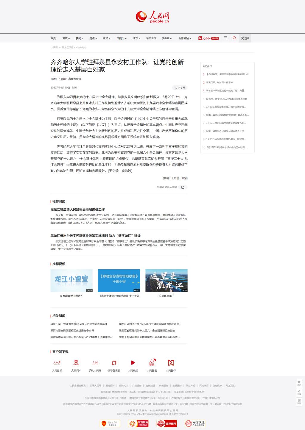上一條:【中經(jīng)聯(lián)播】齊齊哈爾大學駐拜泉縣永安村工作隊 讓創(chuàng)新理論走入基層百姓家