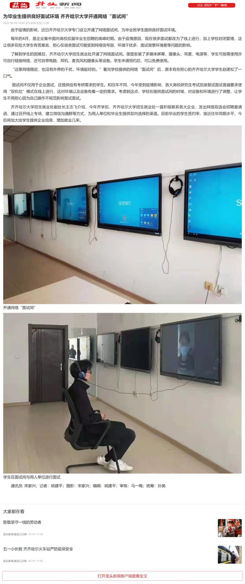 下一條:【齊齊哈爾日報(bào)】為畢業(yè)生提供良好面試環(huán)境 齊齊哈爾大學(xué)開通網(wǎng)絡(luò)“面試間”