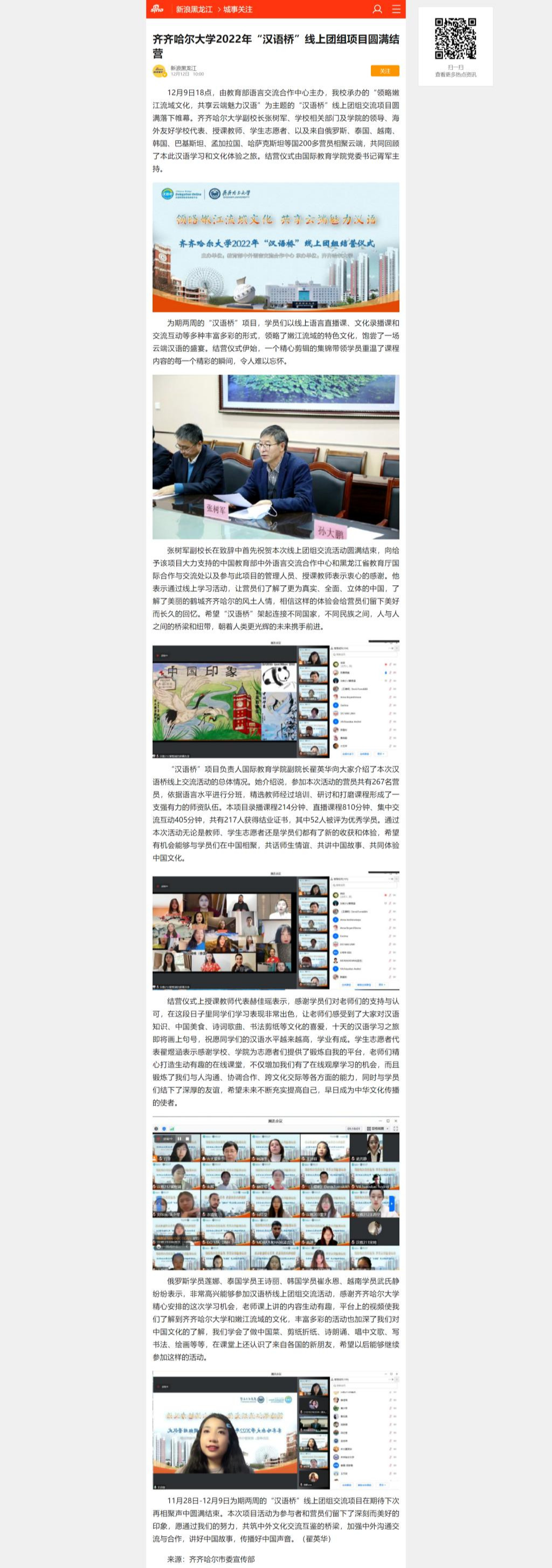 下一條:【人民網(wǎng)】齊齊哈爾大學(xué)2022年“漢語(yǔ)橋”線(xiàn)上團(tuán)組項(xiàng)目圓滿(mǎn)結(jié)營(yíng)