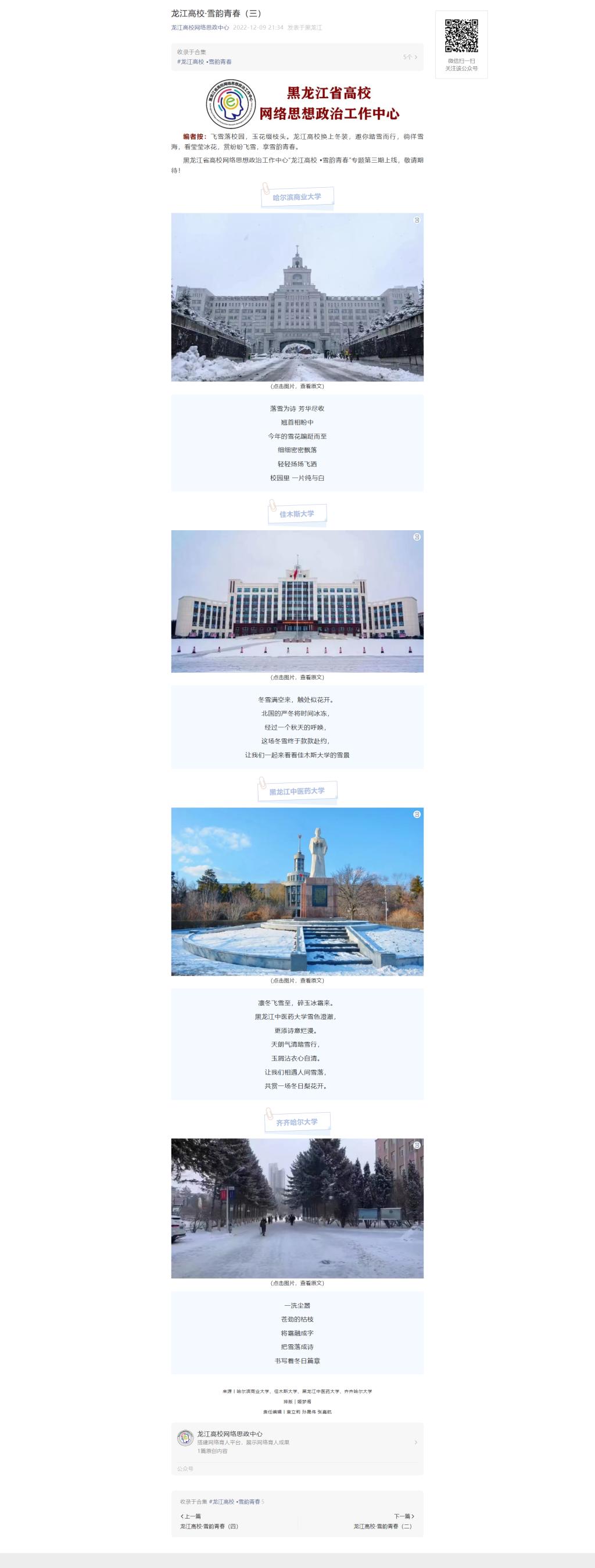 上一條:【龍江高校網(wǎng)絡思政中心】全面學習、全面把握!齊齊哈爾大學深入學習貫徹黨的二十大精神