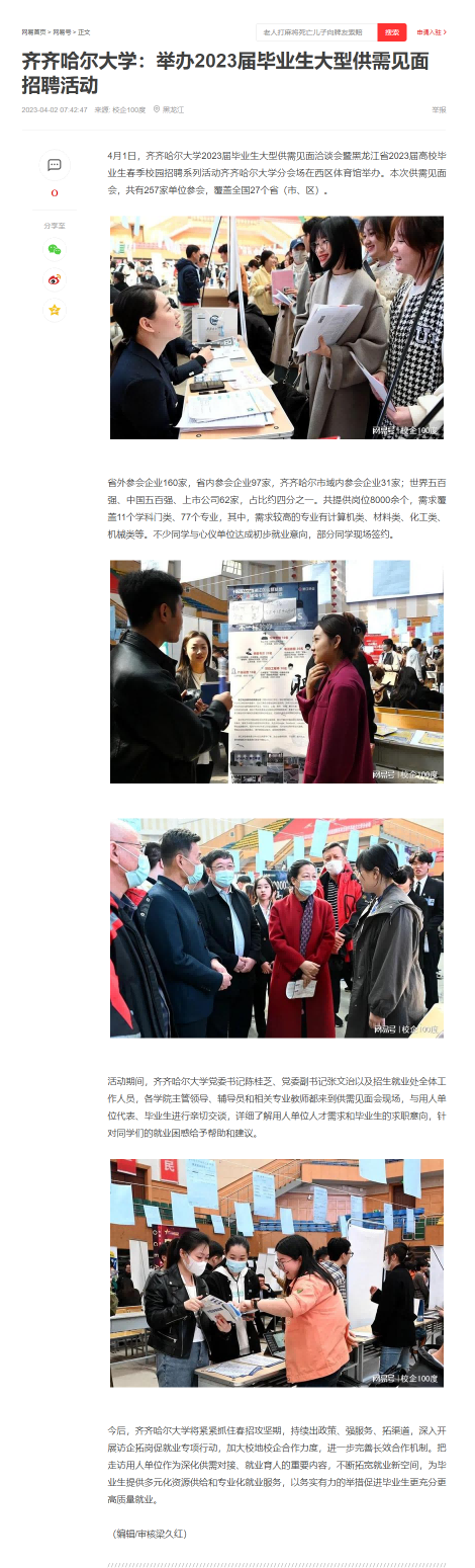 下一條:【看齊通】齊齊哈爾大學(xué)舉辦2023屆畢業(yè)生大型供需見(jiàn)面會(huì)